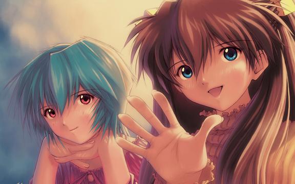 凌波丽和明日香都是新世纪福音战士的女主角。她们可以说在一些方面完全相反,明日香个性外向,绫波丽则是个性内向;明日香相当自傲而且对于自己的成就极度自满,绫波丽总认为她的生命没多少价值。她们的外表也是截然不同:绫波丽是蓝色的短发与红色的眼睛,而明日香则是带红色的金发与蓝色的眼睛。现在你可以来欣赏这组凌波丽明日香桌面壁纸,看看这两个死敌又或者是战友和睦的一面吧~