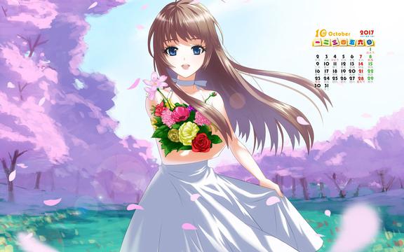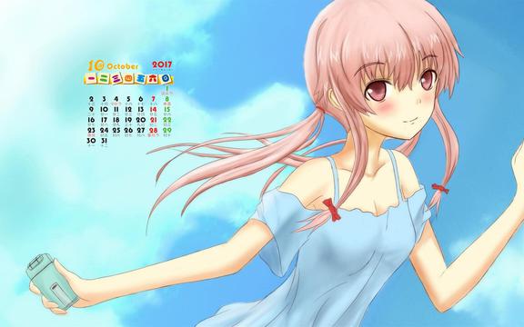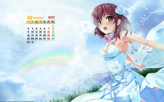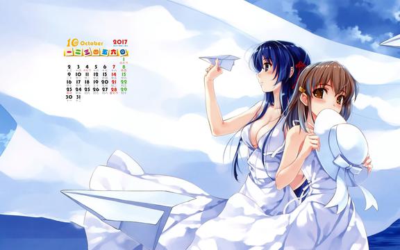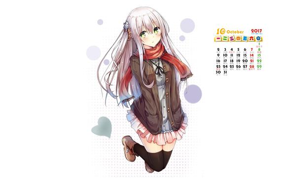 2017年10月动漫美女日历,2017年日历,二次元,动漫美女,日历壁纸,桌面日历,2017年壁纸.