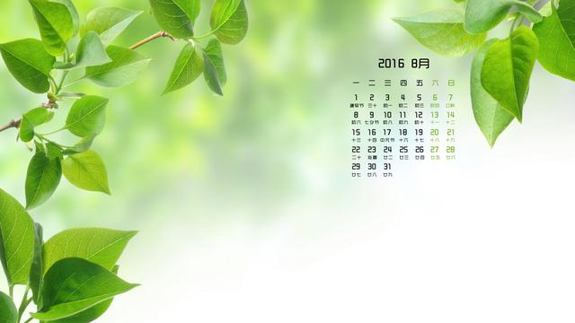 2016年8月清新日历
