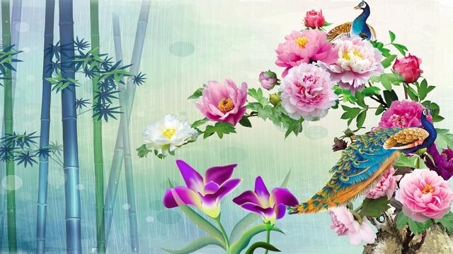 工笔画花鸟孔雀壁纸,孔雀是中国画绘画中的常见元素,也是家居装饰时大家比较喜爱的墙面背景装饰素材之一。由于孔雀羽毛的绚丽而多彩,而且孔雀的体量相对于其他鸟类较大,所以,孔雀装饰画一般都作为客厅的装饰素材,尤其是在沙发背景墙的使用中较为常见。