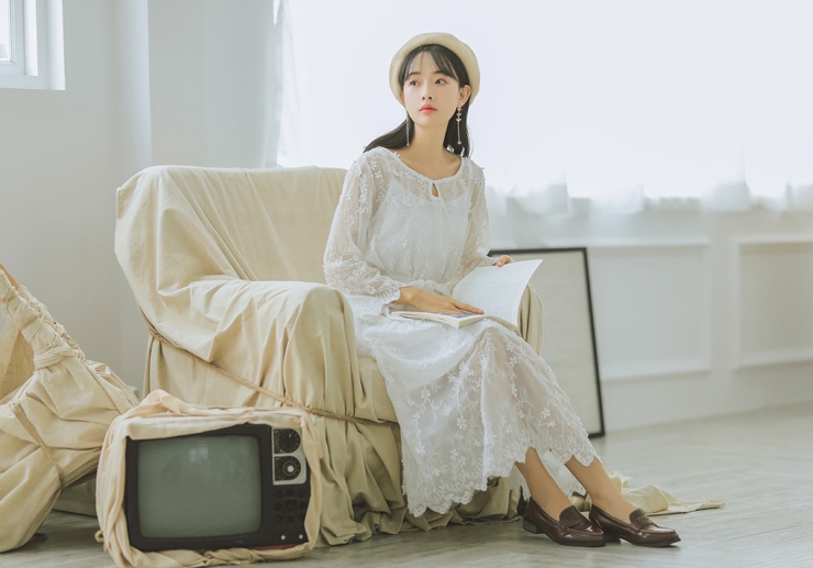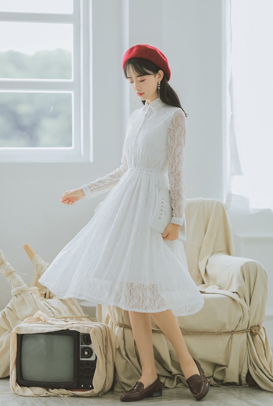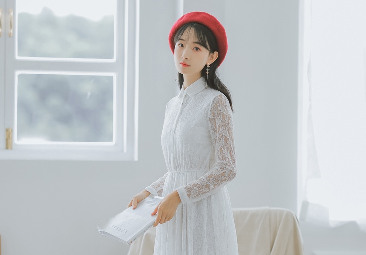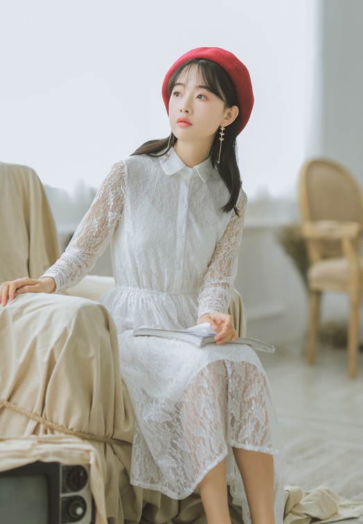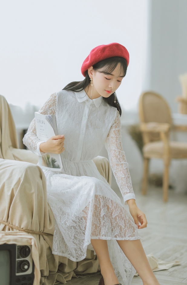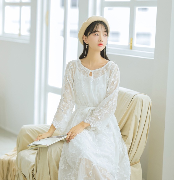 2018年度新款清新简约的森女系蕾丝连衣裙,看起来很是清新,穿上去可以立马变成漂亮的花仙子。高腰线设计,简约而又优雅,有点慵懒的感觉,配上时尚的帽子,则显得更为文艺。