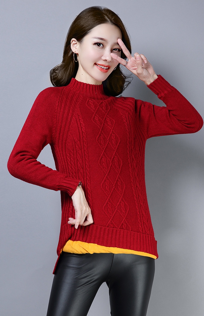 2018秋季新品时尚百搭复古红针织毛衣女装,特色针织,绒面柔糯顺滑,舒适保暖,车工均匀,走线严谨;有纹理的编织,自由半高领,勾勒颈脖线条,保暖舒适;弹性好不易变形,更贴合身体曲线,易搭配。袖型,自然舒适,整体效果干练,气质感十足,简洁,包裹严实。