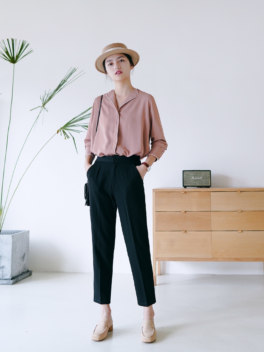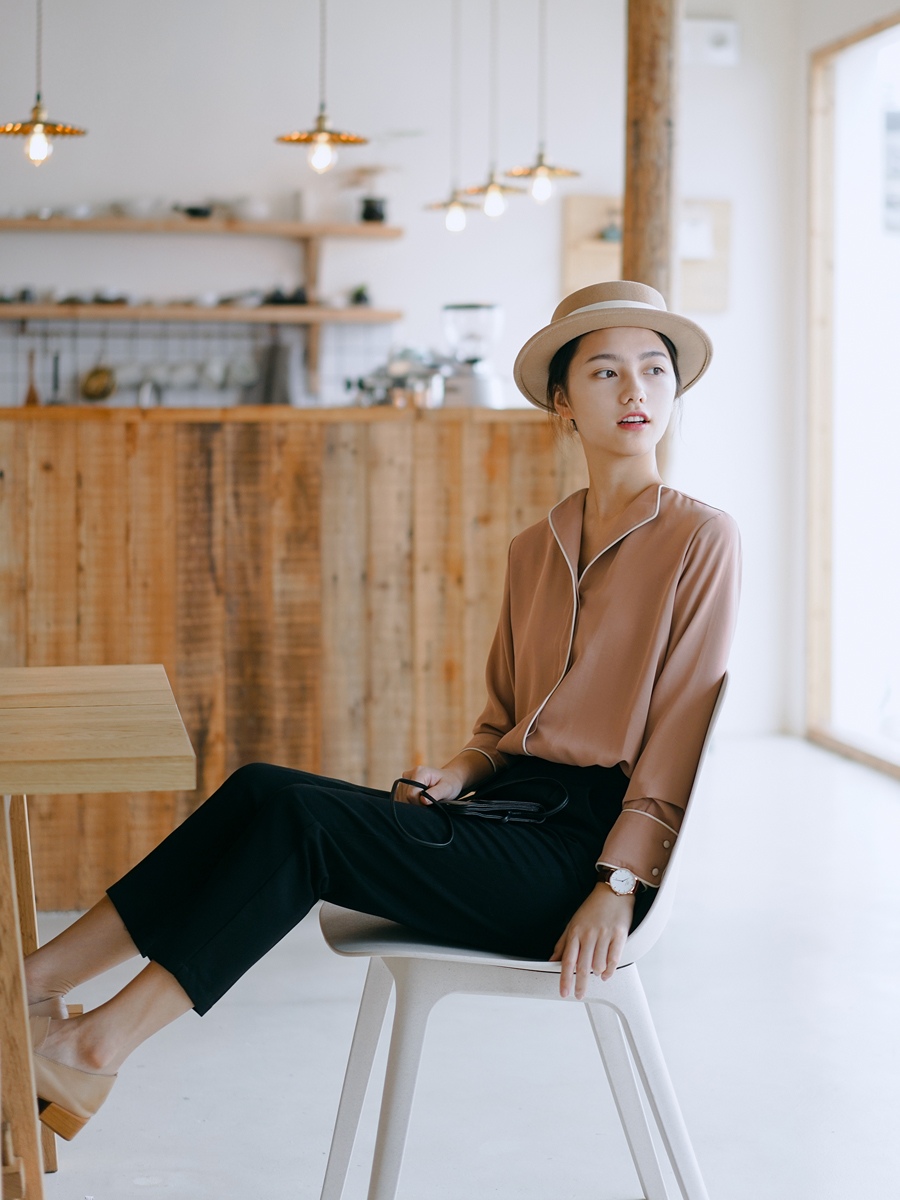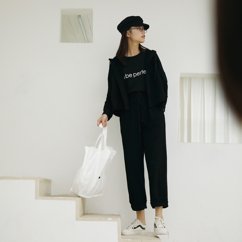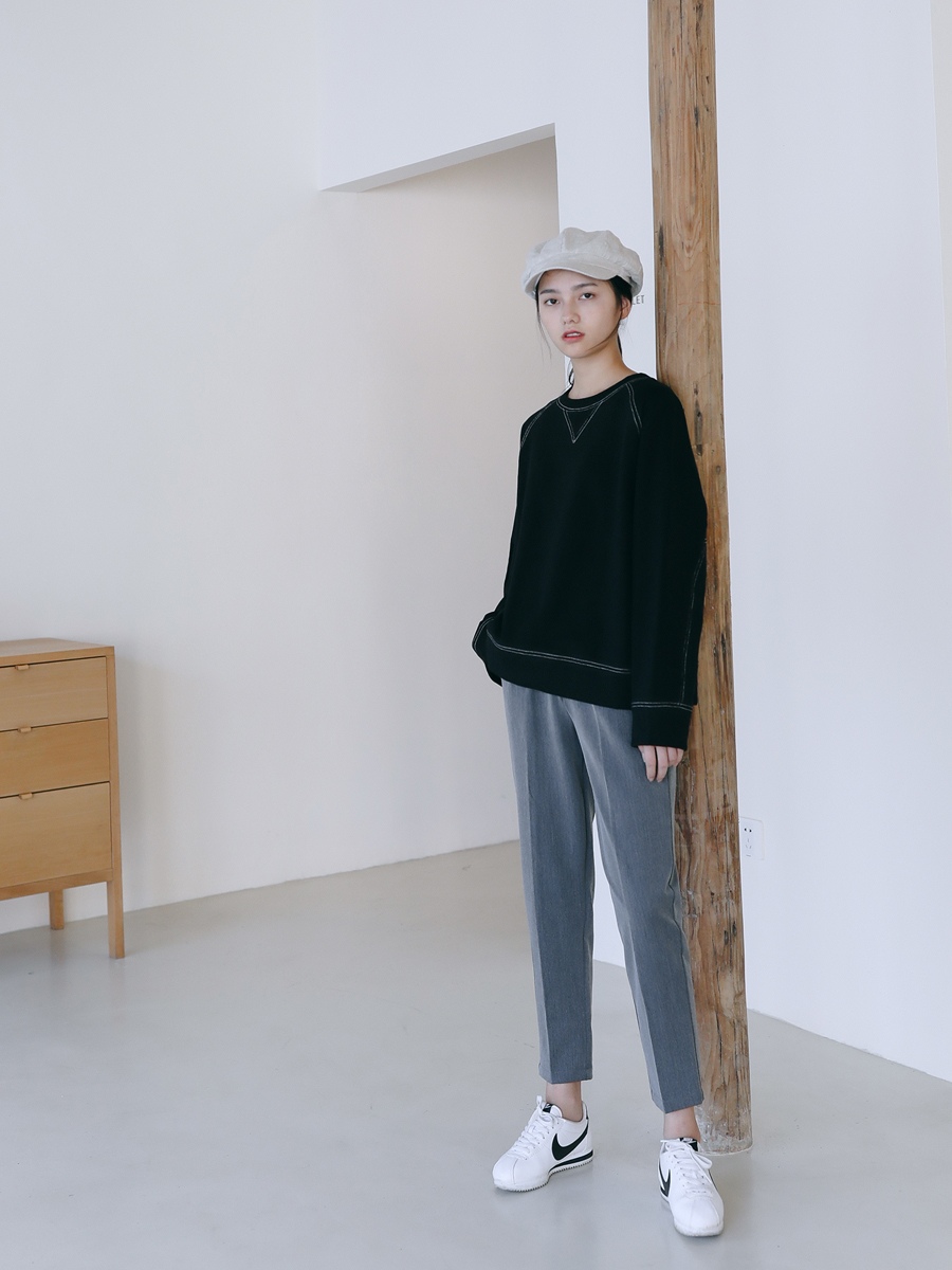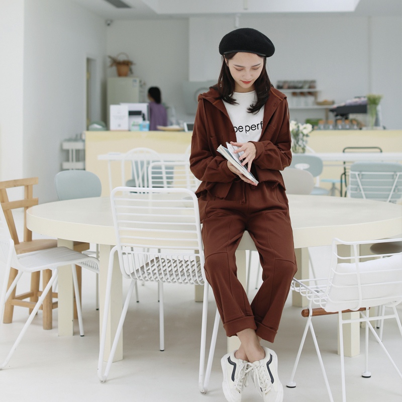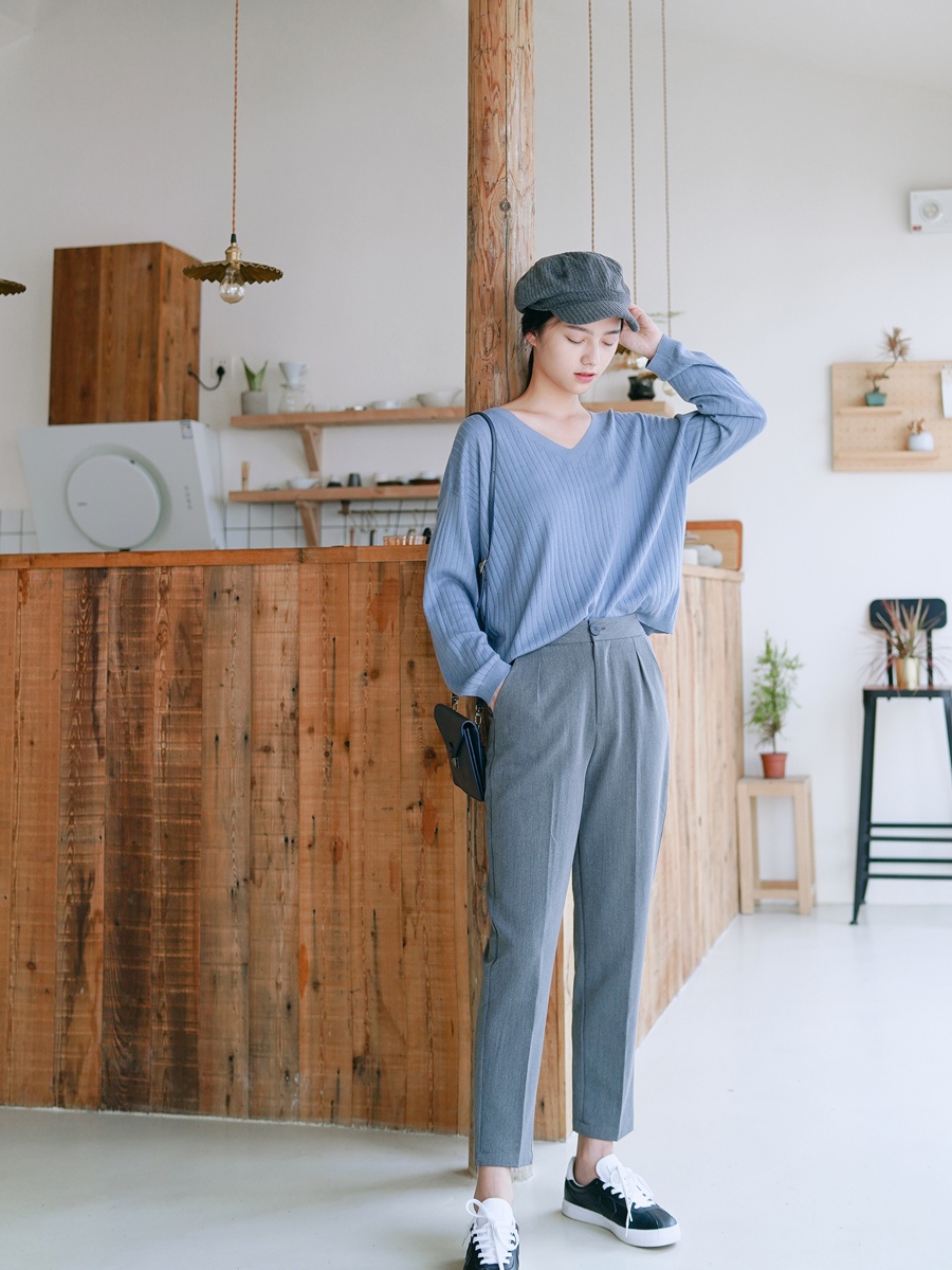 叙旧慵懒风休闲时尚百搭套装图片,亲肤绵软的面料,薄厚适中,早秋穿正好,再冷一些的时候,外面套件风衣或外套也保暖有型。