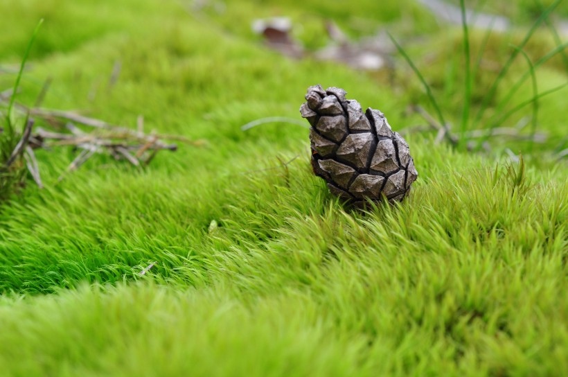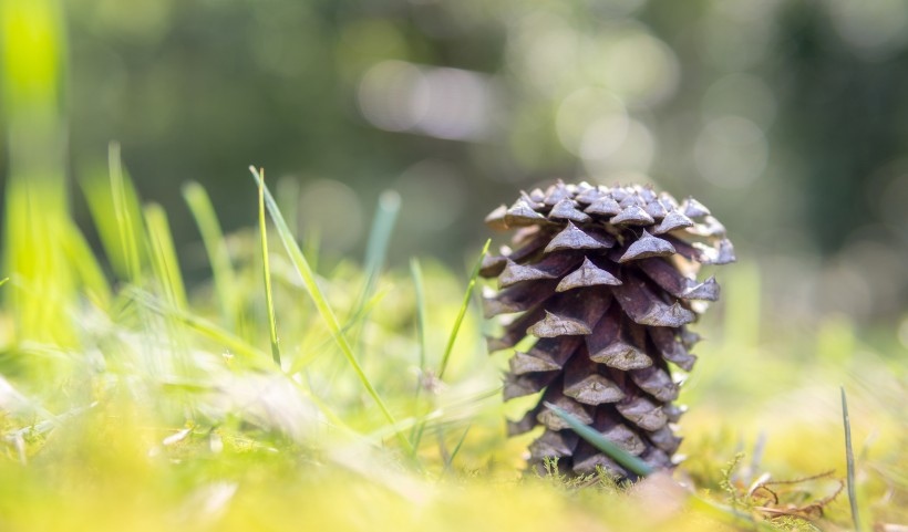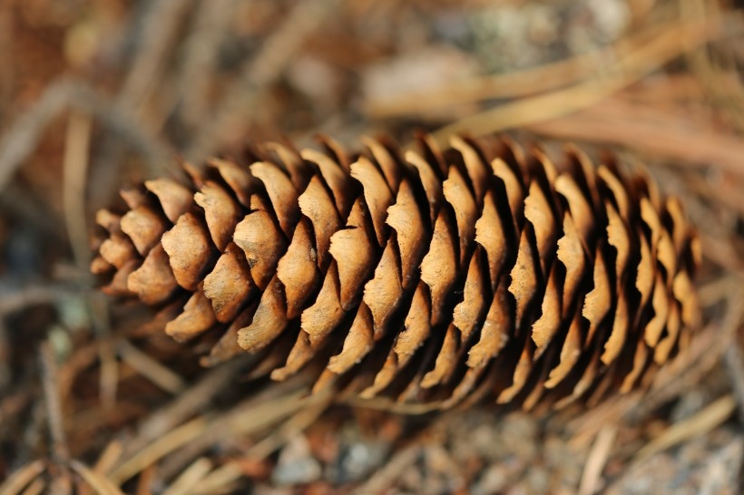 野外的干松果图片,松树林里,松果稀稀疏疏落在地上,俯拾拾起,想着小松鼠们是不是在快过冬的时候会忙着收集它呢?