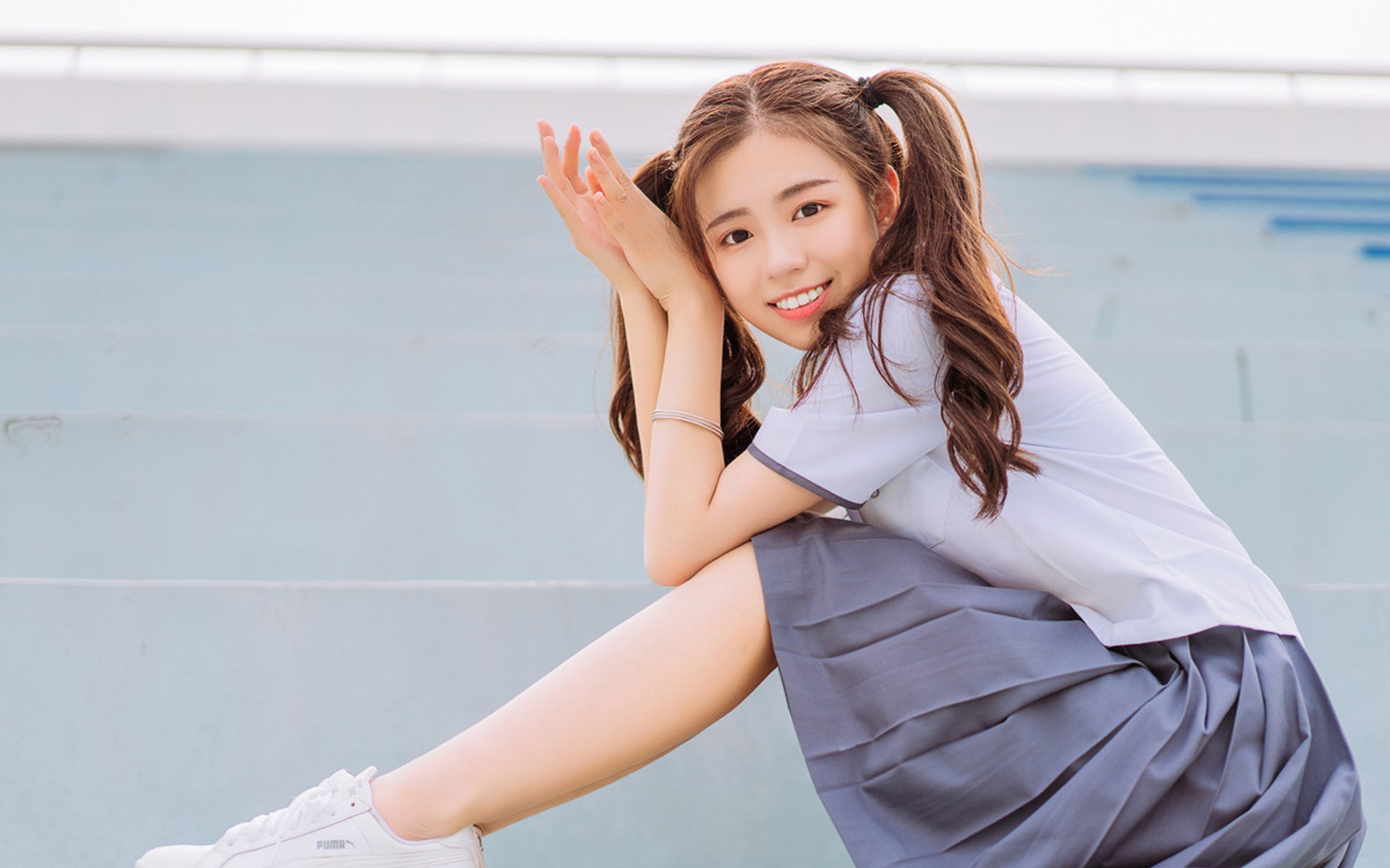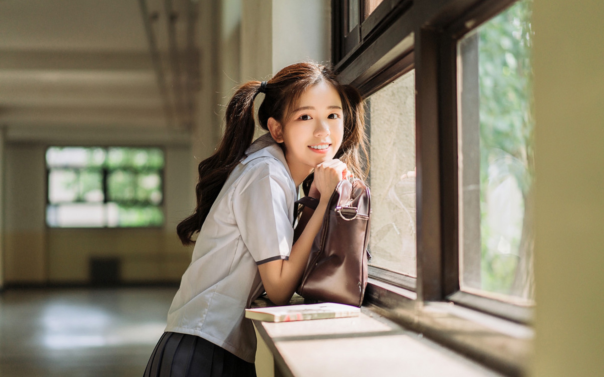 扎着马尾辫的校园美少女,有着一双清澈的大眼睛,给人感觉很可爱很萌,活脱脱的一个甜美少女,温柔又俏皮,让人看了就喜欢。