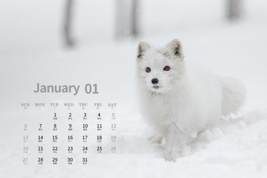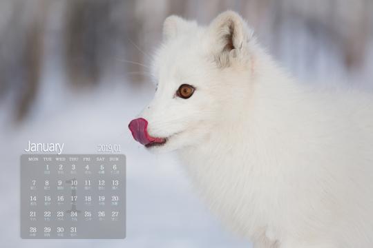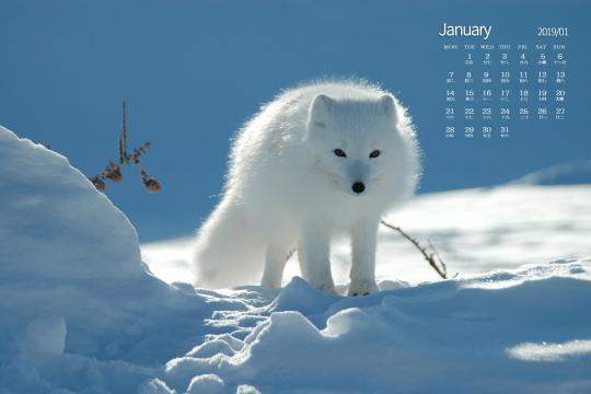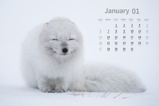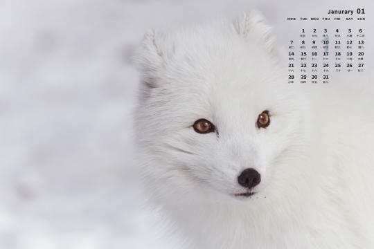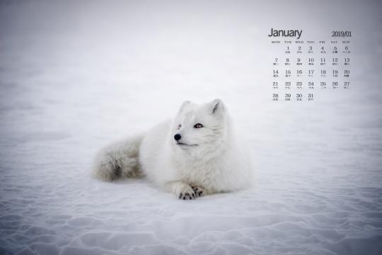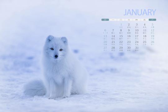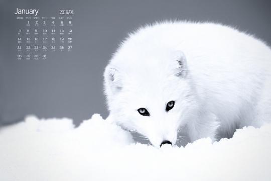 2019年1月超级可爱的北极狐图片日历壁纸,一身雪白的皮毛、优美的姿态,北极狐在可爱之余,还透着一丝优雅,看似高傲、不食人间烟火的他们,却是懂得精打细算过日子的乖宝宝呢!