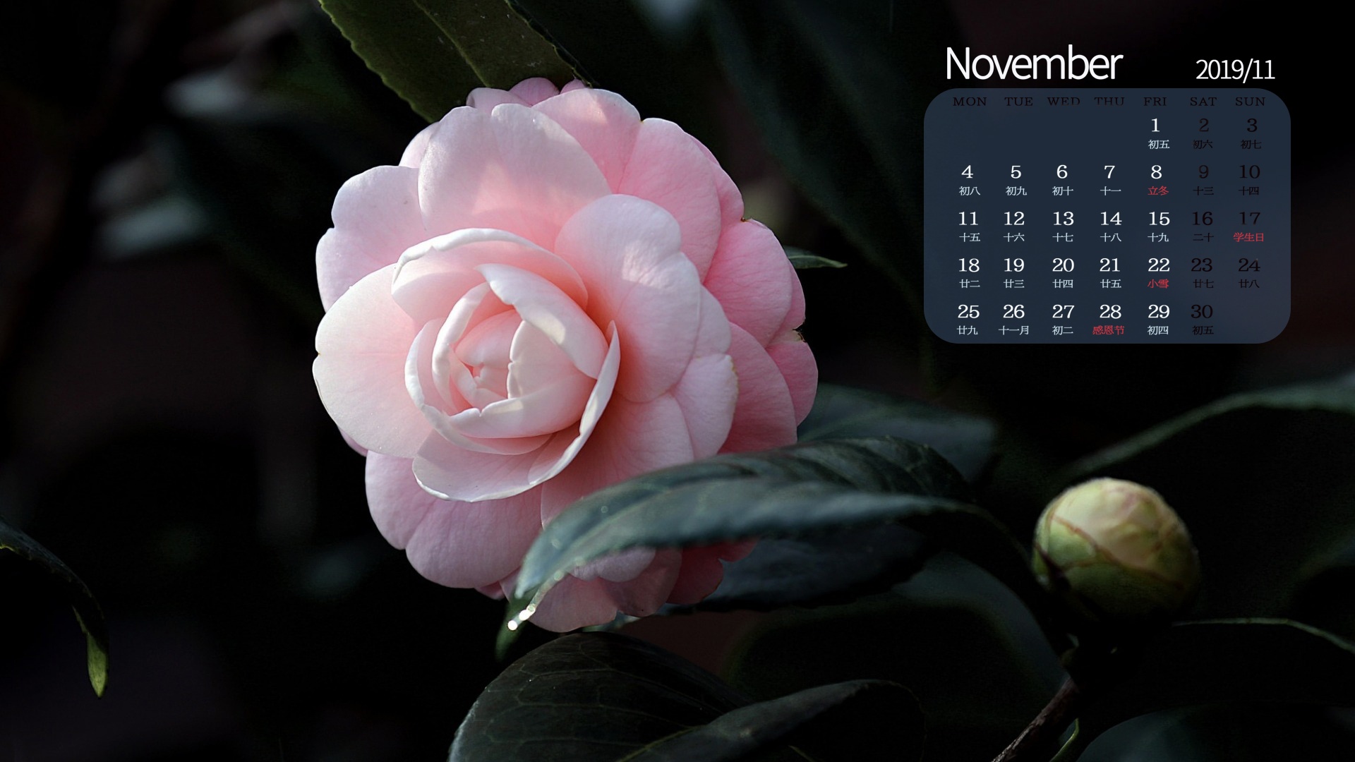 2019年11月代表花之山茶花日历壁纸,十一月之代表花——山茶花 花之寓意:可爱、谦让、理想的爱、了不起的魅力。山茶花神:王昭君 王昭君,姓王名嫱,南郡秭归人。汉元帝时以“良家子”入选掖庭。王昭君入宫数年,不得见御,积悲怨,乃请掖庭令求行。呼韩邪临辞大会,帝召五女以示之。昭君丰容靓饰,光明汉宫,顾影徘徊,竦动左右。帝见大惊,意欲留之,而难于失信,遂与匈奴。