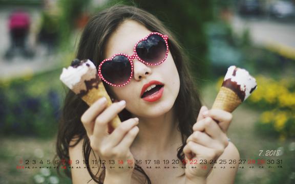 2018年7月清新女生日历