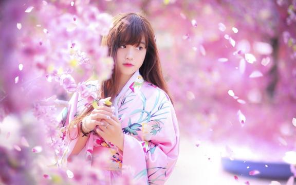 和服美女漫步在花海中,花香随风飘散,淡淡的清香令人陶醉。穿着漂亮时尚的和美女沉浸在花海里,一切是那么的的美,在花的映衬下格外的明媚动人。