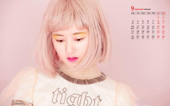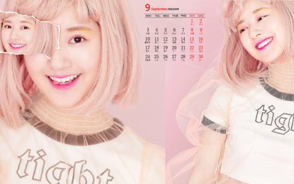 2018年9月赵露思粉色梦幻写真日历壁纸,在一组写真中,赵露思面对镜头,露出自然清新的微笑,动作可爱俏皮,沁人心脾。