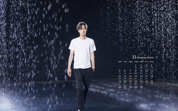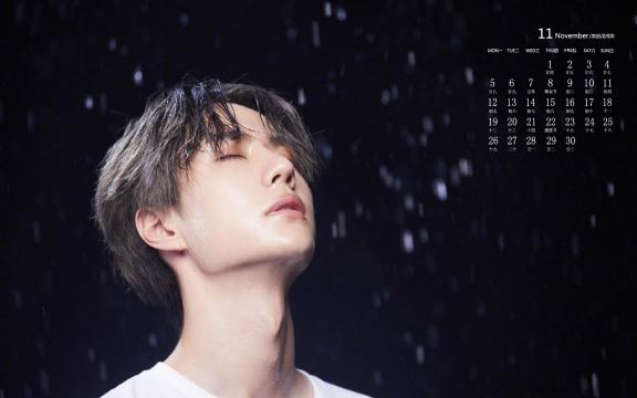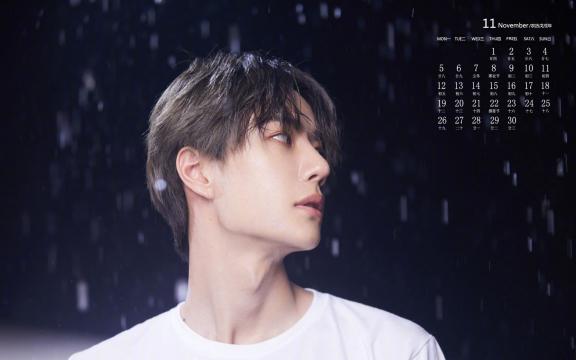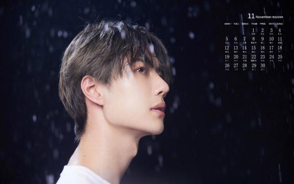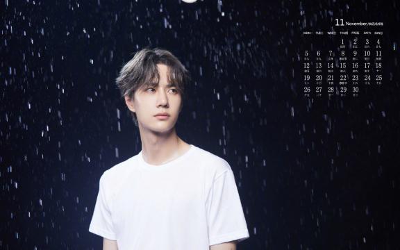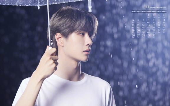 2018年11月璀璨少年王一博雨景日历