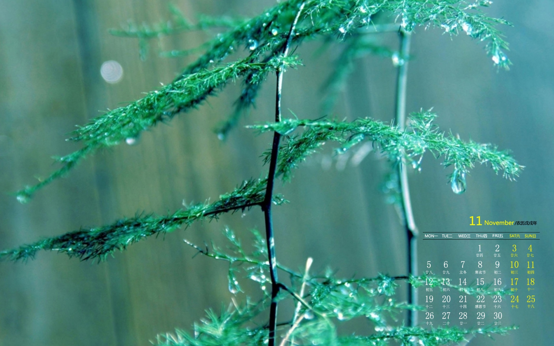 2018年11月绿色植物护眼日历壁纸,红,黄,蓝,绿,青,白,紫世界上真是色彩万分,但我更钟爱绿色,因为绿是宁静的色彩,绿是欣欣向荣的象征,绿是生命的依托,绿是健康的保证,绿色象征希望,绿色象征活力。