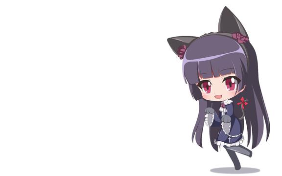 Q版黑猫五更琉璃桌面壁纸。五更琉璃是个孤傲、固执、寡言,个性又别扭的女孩。平齐刘海黑长直发的姬发式,雪白的肌肤,细长清秀的眼睛,左眼角下艳丽的泪痣是她的萌点,是个和风美人。网络昵称“黑猫”,喜欢穿着黑色哥特萝莉装,但当穿着白衣时会转变成“白猫”模式,在与京介的初次约会中还进化为圣天使“神猫”。
